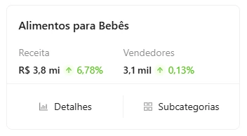 🔎 Análise de concorrência: Avalie se novos vendedores estão conseguindo espaço na categoria desejada e se produtos recentes estão tendo bons números de vendas.