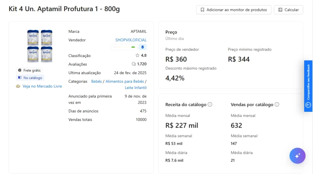 ✅ Monitore seus produtos: Fique de olho em produtos estratégicos para acompanhar variações de preços e vendas.