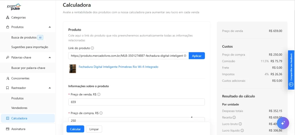 ✅ Calcule sua margem de lucro: Use a calculadora da Joom Pulse para investir de forma segura, com previsão da margem de lucro de cada venda.